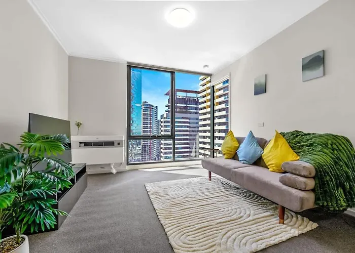 A que distância fica Luxury Southbank High-Rise With Pool & Gym apartamento do centro da cidade?